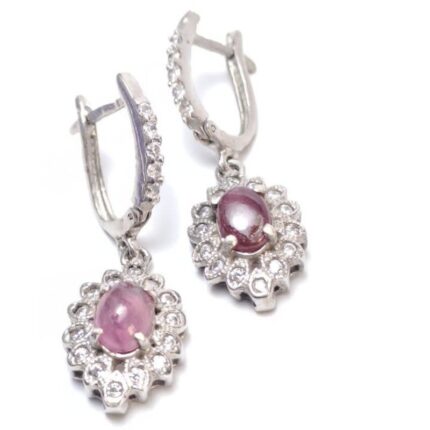 نیم ست نقره یاقوت صورتی آفریقایی اصل دامله (گردنبند و گوشواره) عیار 925 روکش رودیوم آقابزرگ کد Med82