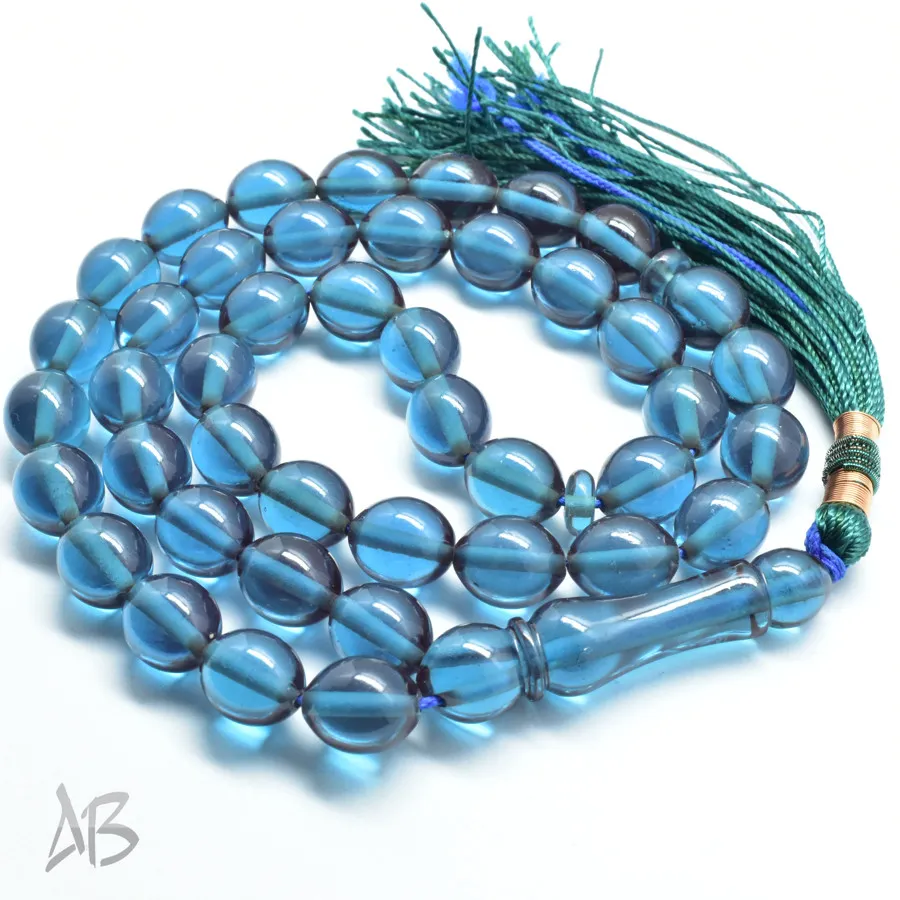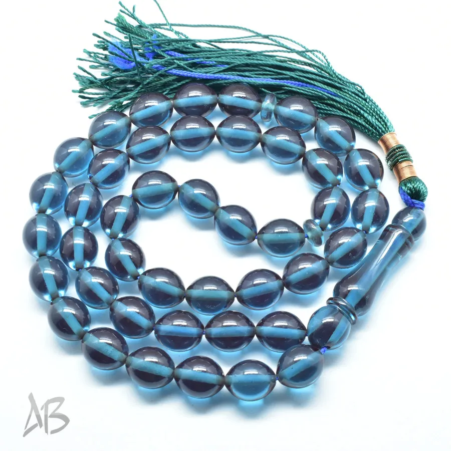 تسبیح سندلوس اصل بودار 43 دانه آبی نفتی تراش تخم کفتری خوشدست کد 1309