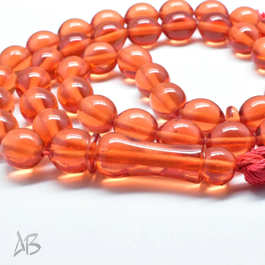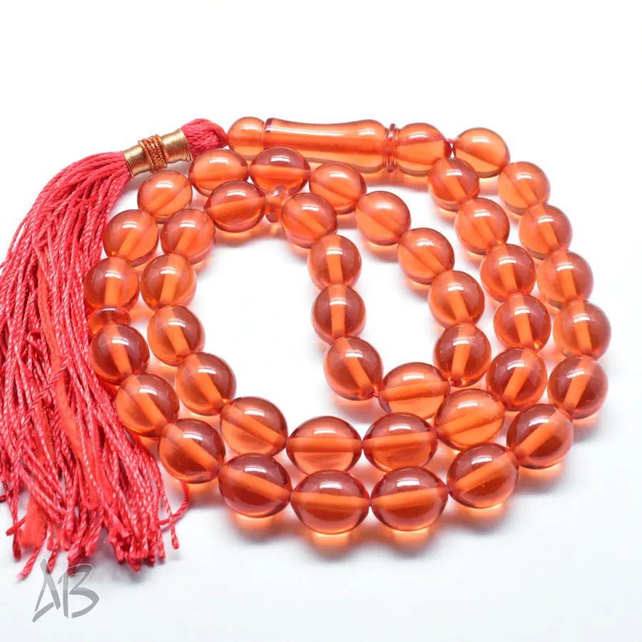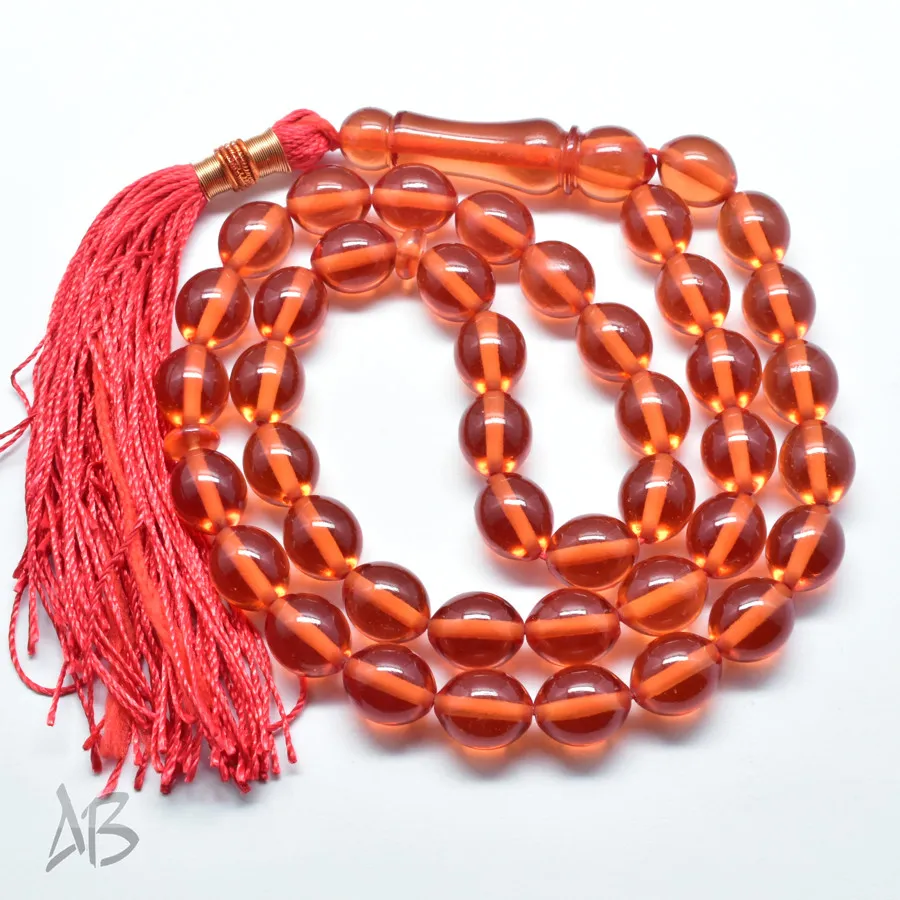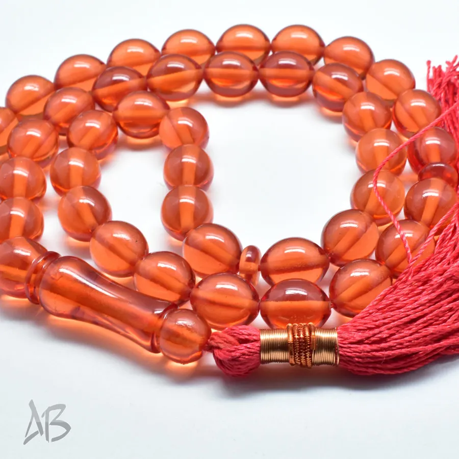 تسبیح سندلوس اصل بودار 43 دانه قرمز کمرنگ تراش تخم کفتری خوشدست کد 1310