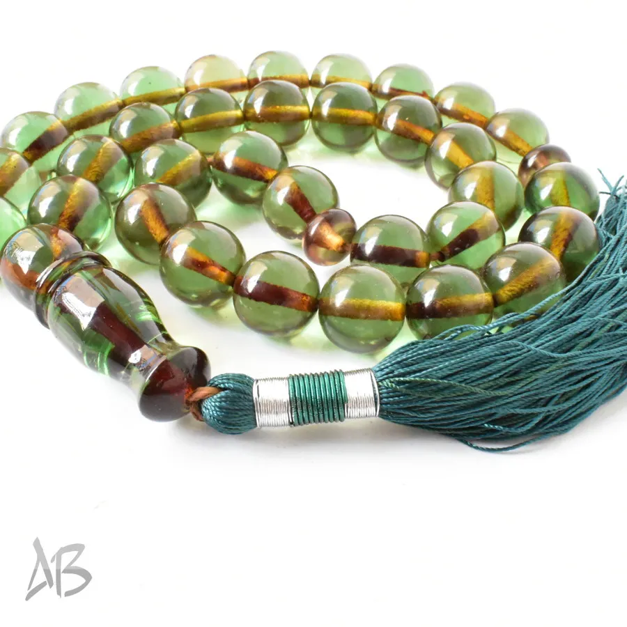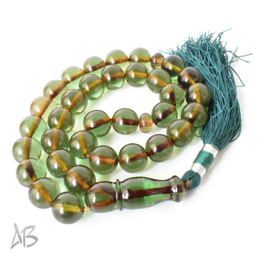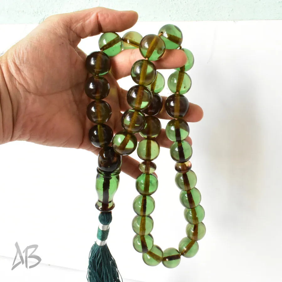 تسبیح سندلوس بسیار درشت 33 دانه اصل سبز رنگ کد 1306 بودار تراش گرد سایز 20 آقابزرگ