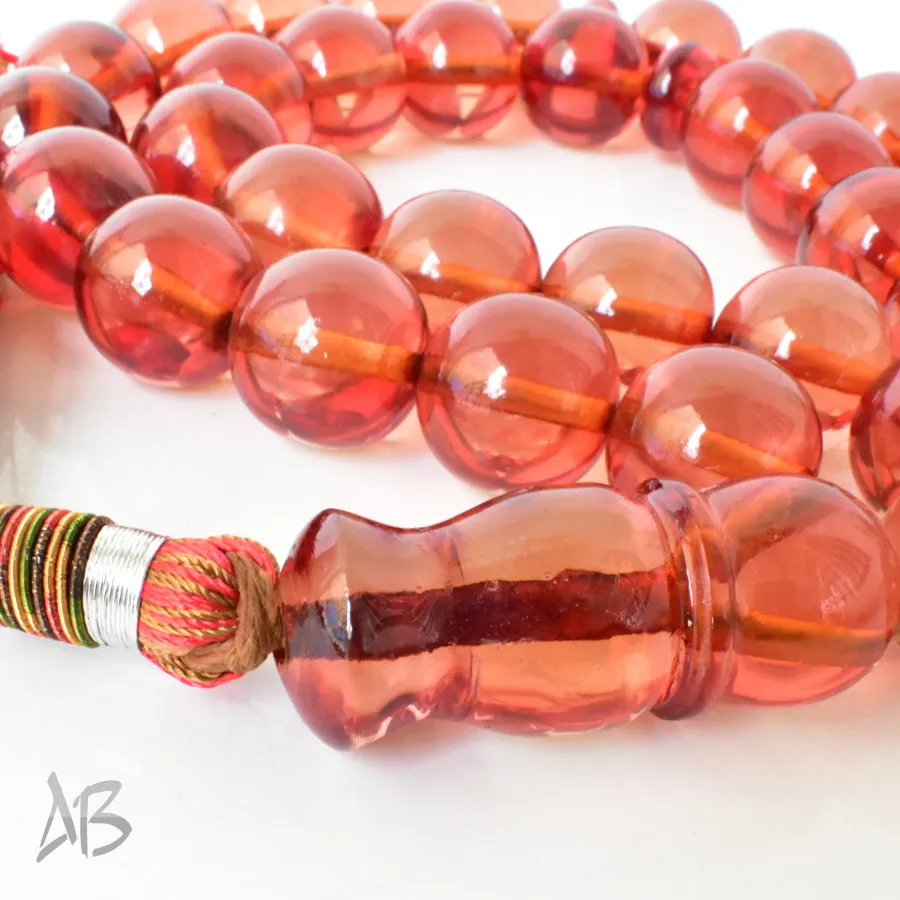 مهرههای تسبیح سندلوس در گذشتههای بسیار دور از صمغ شفاف و زرد رنگ نوعی درخت ساخته میشد. در حال حاضر بسیار بعید است که بتوان تسبیحی با این ویژگیها پیدا کرد و تمام تسبیحهای سندلوس اصل بودار موجود در بازار، اعم از آلمانی یا غیر آلمانی (کهنه یا جدید) از نوعی رزین مصنوعی ساخته شدهاند.