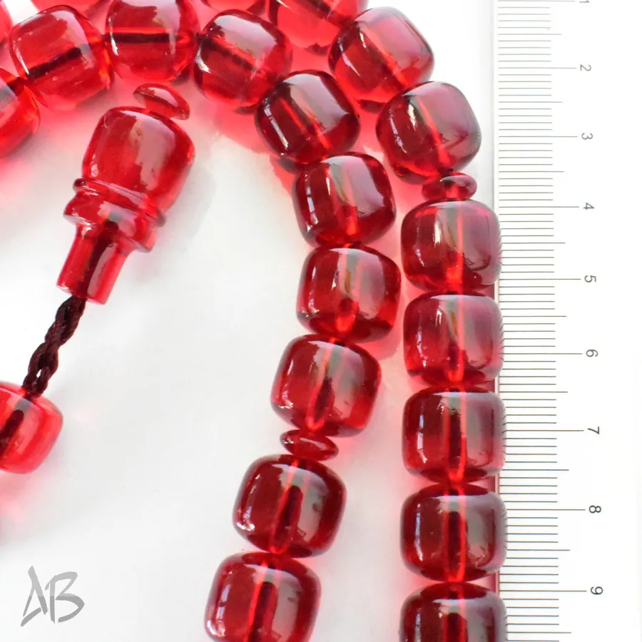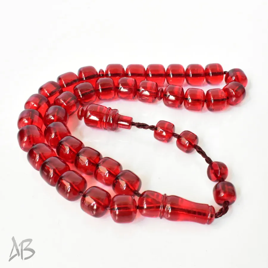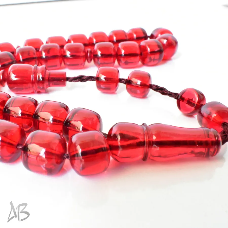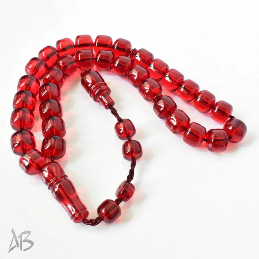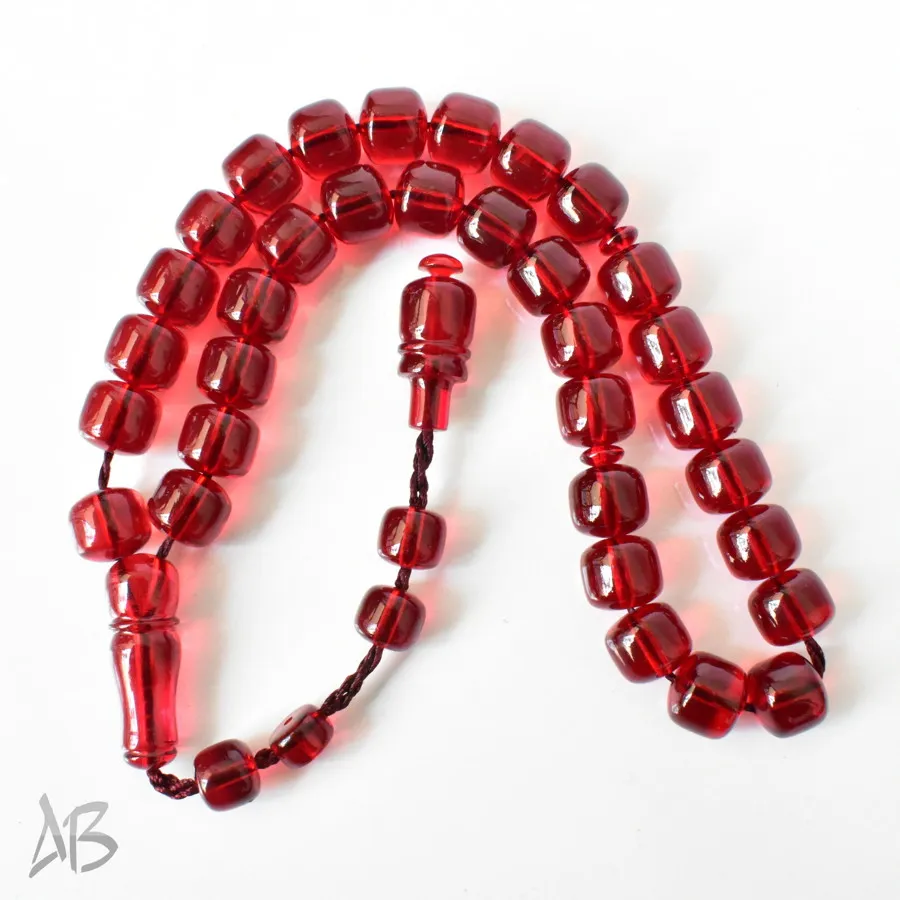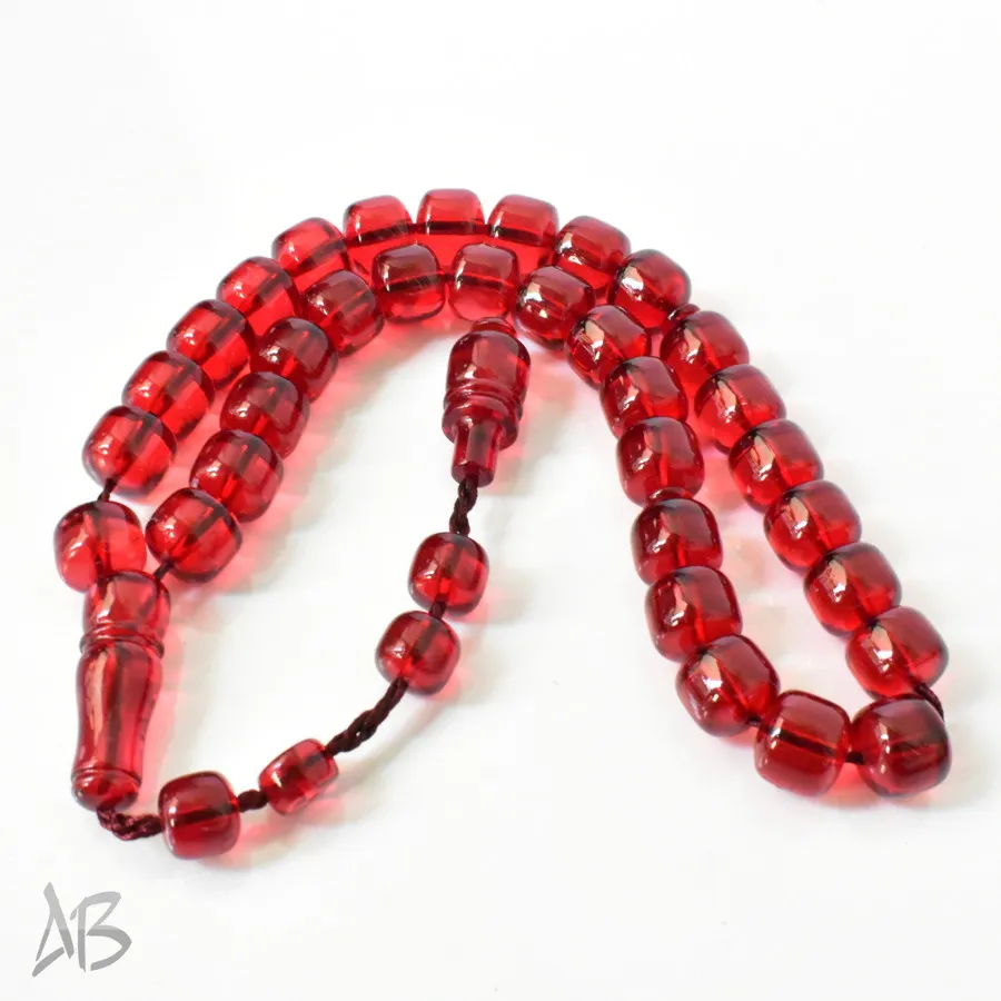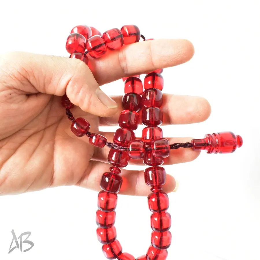 تسبیح سندلوس بودار 33 دانه اصل کد 1298 قپاندار استوانهای لبه گرد قرمز زیبا آقابزرگ