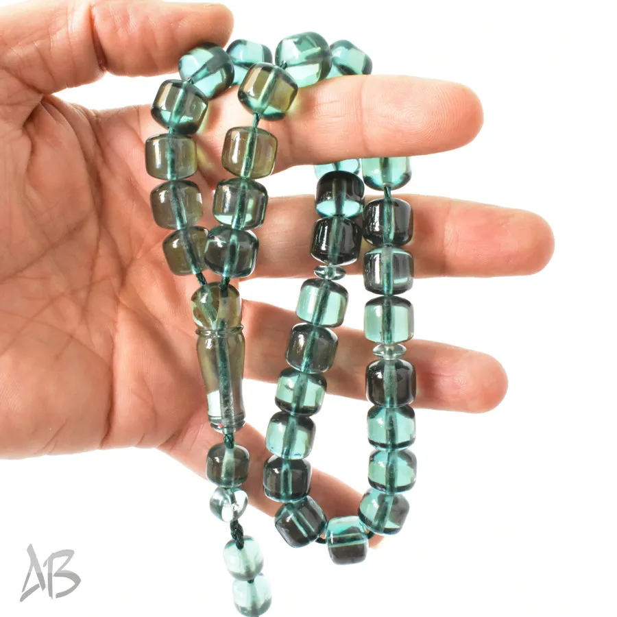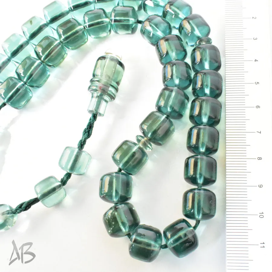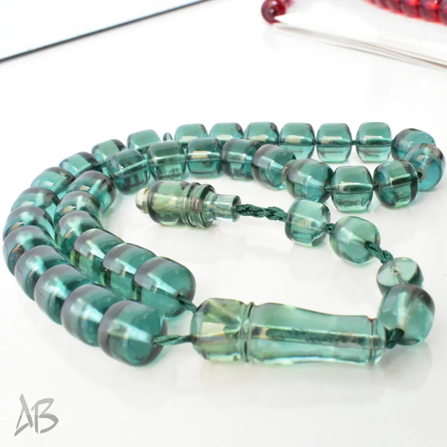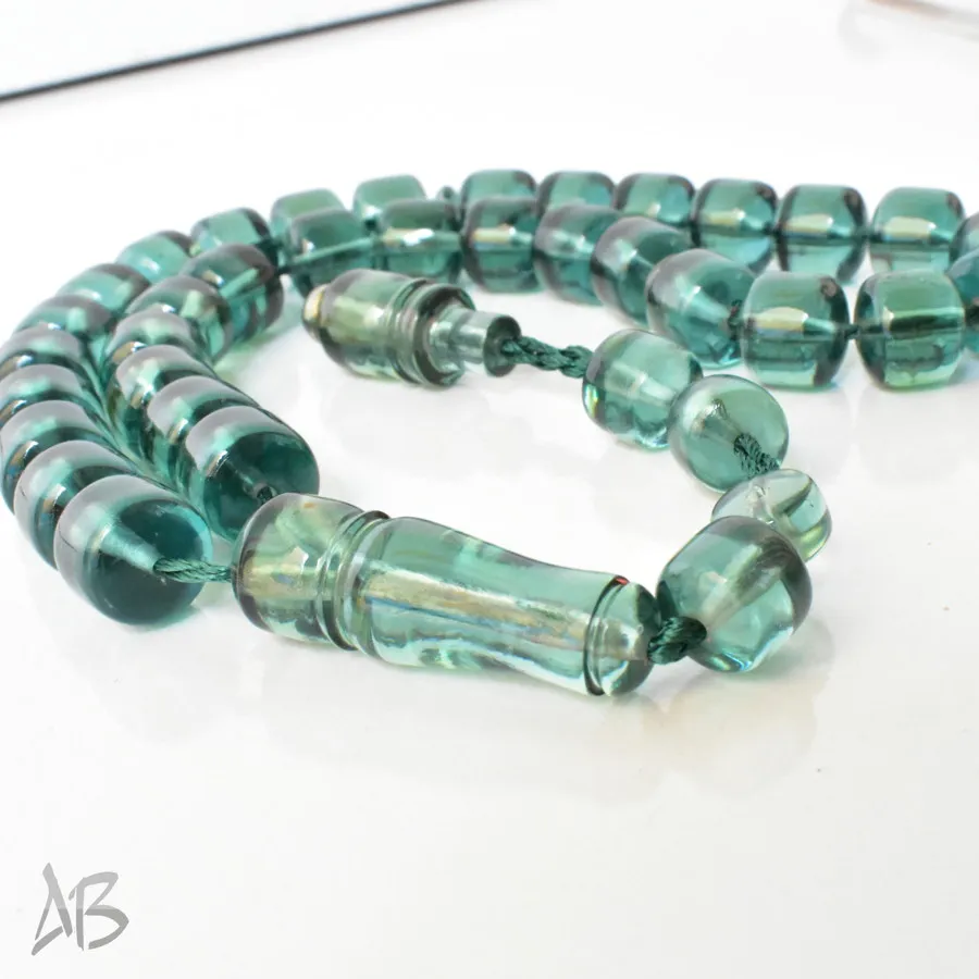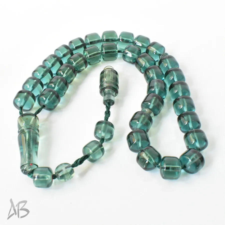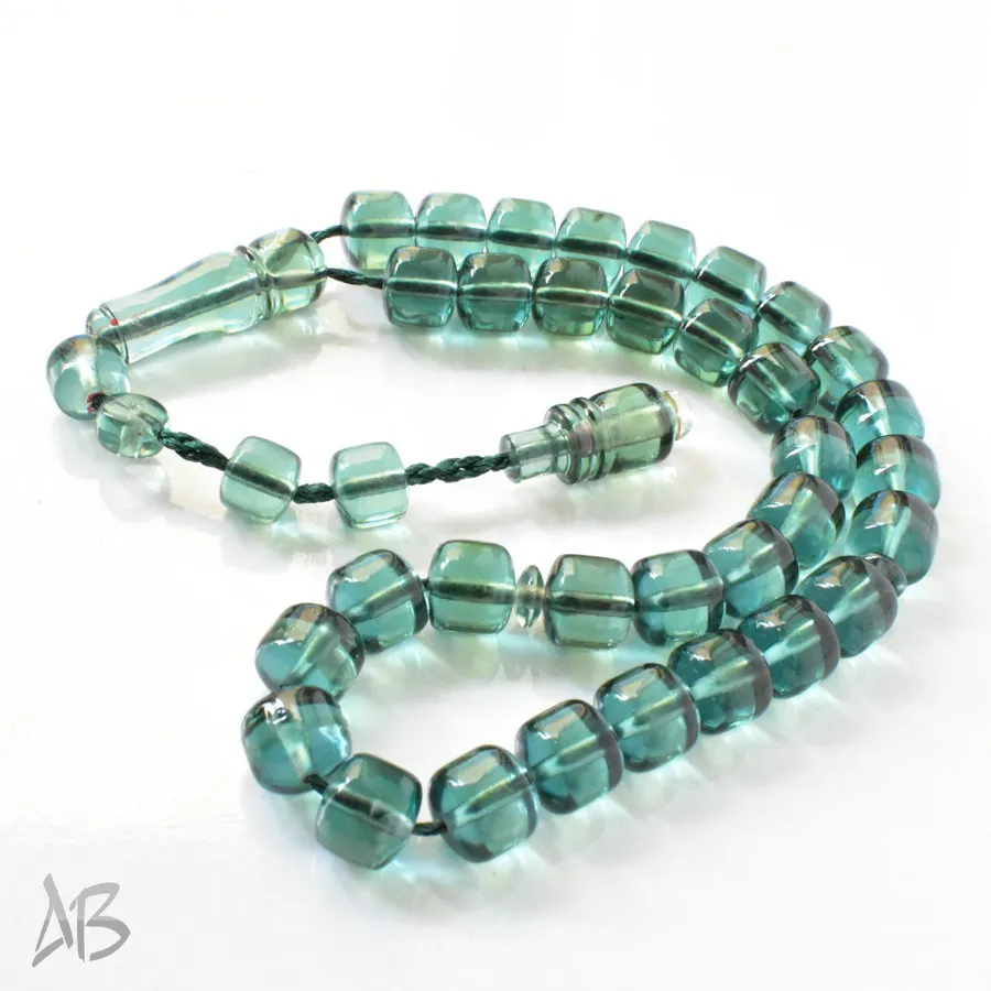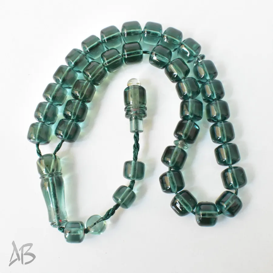 تسبیح سندلوس بودار 33 دانه اصل کد 1300 قپاندار استوانهای لبه گرد سبز زیبا آقابزرگ