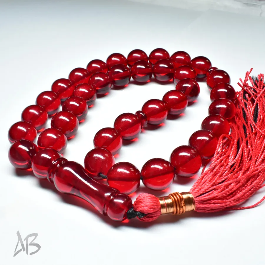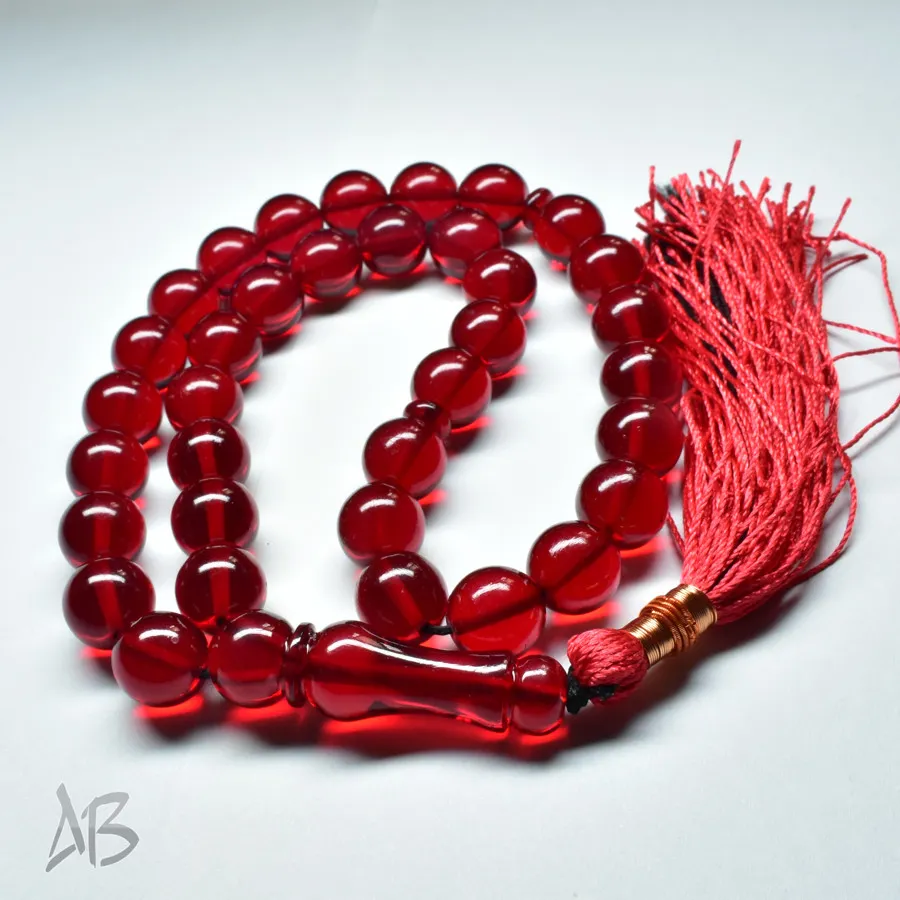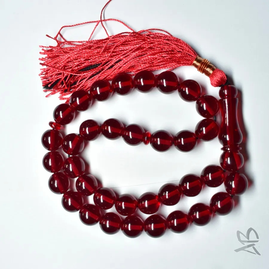 تسبیح سندلوس بودار 35 دانه اصل کد 1313 گرد قرمز بسیار خوشرنگ آقابزرگ