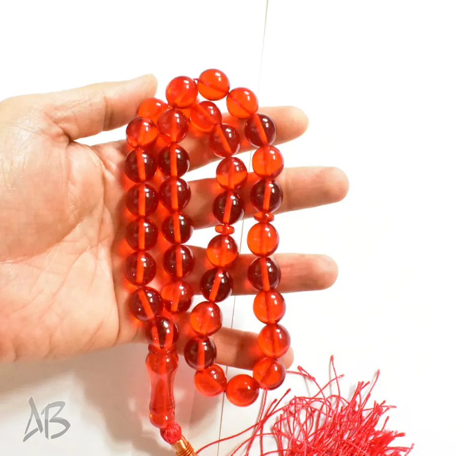 تسبیح سندلوس بودار 35 دانه اصل کد 1315 گرد قرمز روشن آقابزرگ