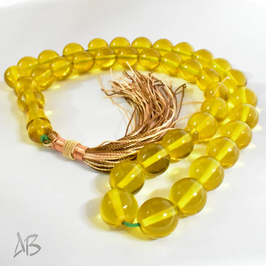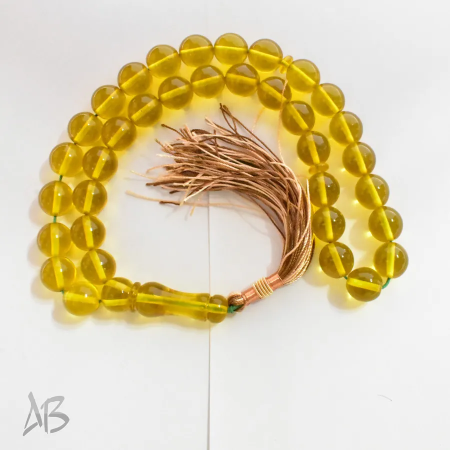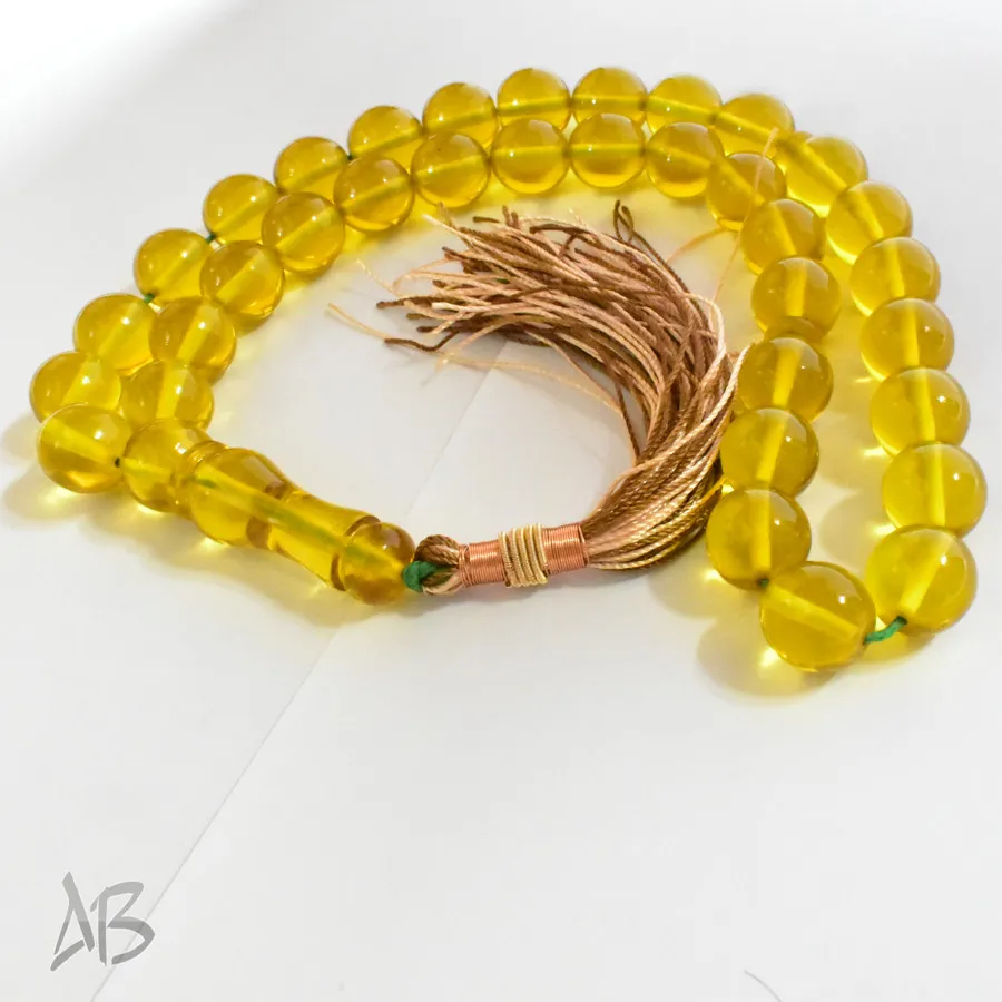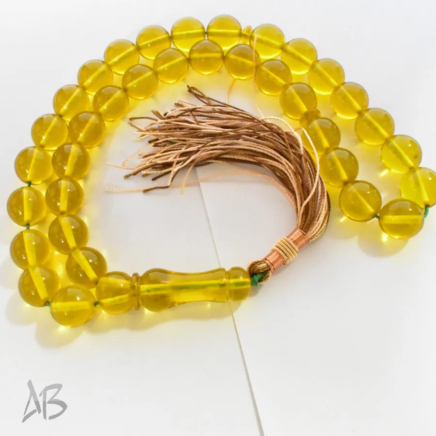 تسبیح سندلوس بودار 35 دانه اصل کد 1316 گرد زرد خوشرنگ آقابزرگ