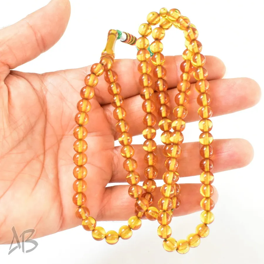 مهرههای تسبیح سندلوس در گذشتههای بسیار دور از صمغ شفاف و زرد رنگ نوعی درخت ساخته میشد. در حال حاضر بسیار بعید است که بتوان تسبیحی با این ویژگیها پیدا کرد و تمام تسبیحهای سندلوس اصل بودار موجود در بازار، اعم از آلمانی یا غیر آلمانی (کهنه یا جدید) از نوعی رزین مصنوعی ساخته شدهاند.