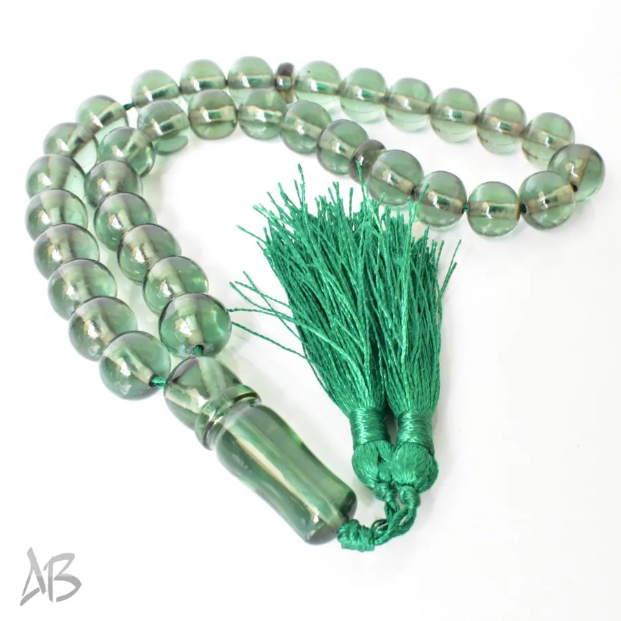 مهرههای تسبیح سندلوس در گذشتههای بسیار دور از صمغ شفاف و زرد رنگ نوعی درخت ساخته میشد. در حال حاضر بسیار بعید است که بتوان تسبیحی با این ویژگیها پیدا کرد و تمام تسبیحهای سندلوس اصل بودار موجود در بازار، اعم از آلمانی یا غیر آلمانی (کهنه یا جدید) از نوعی رزین مصنوعی ساخته شدهاند.