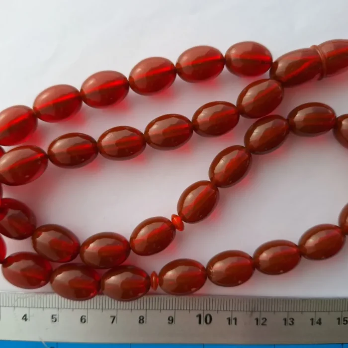 تسبیح سندلوس 33 دانه اصل بودار کد 998 تراش تخممرغی قرمز زیبا آقابزرگ