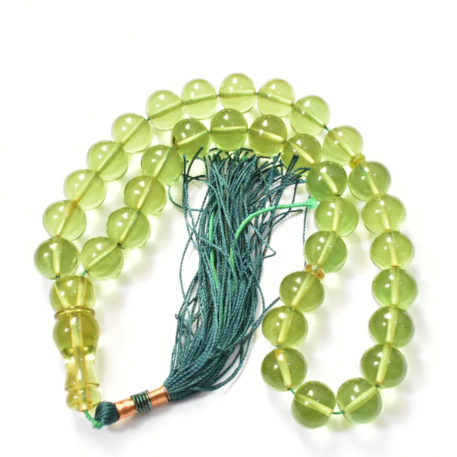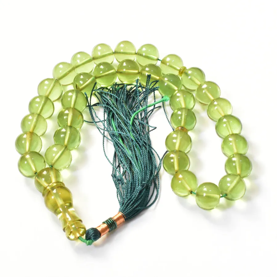 • تست بو: اگر مهرههای تسبیح سندلوسی که از جنس Bakelite هستند را آنقدر مالش دهید که داغ شود و یا در آب داغ قرار دهید به دلیل وجود فرمالدئید در این نوع رزین، بوی فرمالدئید به مشام میرسد.
