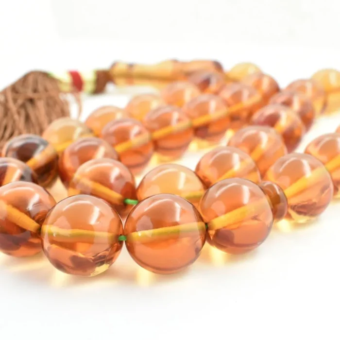 • تست بو: اگر مهرههای تسبیح سندلوسی که از جنس Bakelite هستند را آنقدر مالش دهید که داغ شود و یا در آب داغ قرار دهید به دلیل وجود فرمالدئید در این نوع رزین، بوی فرمالدئید به مشام میرسد.