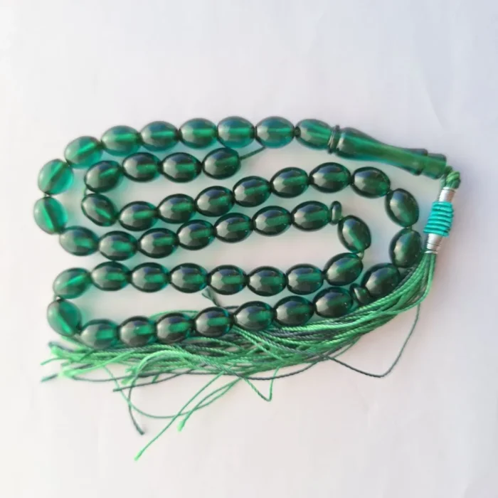 تسبیح سندلوس 47 دانه اصل بودار کد 1004 تراش تخممرغی سبز خوشرنگ آقابزرگ