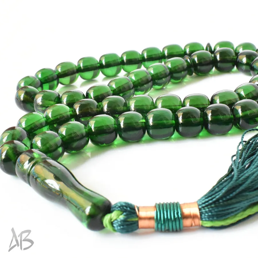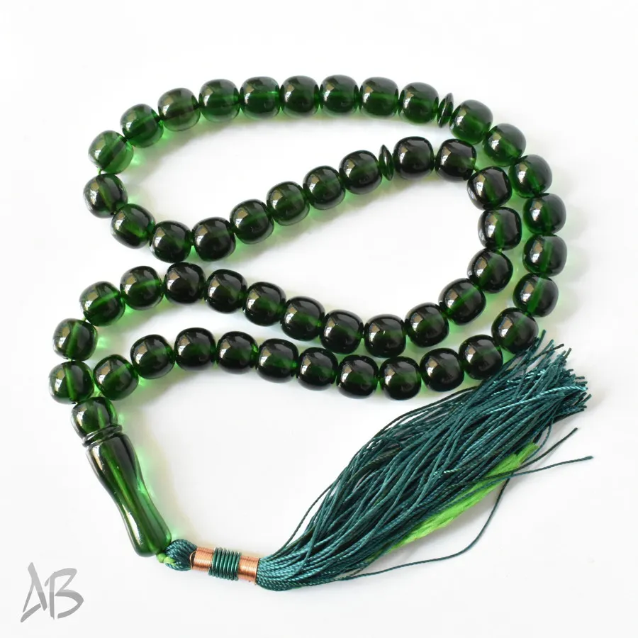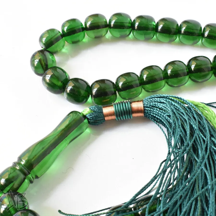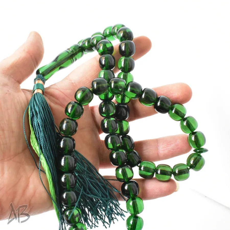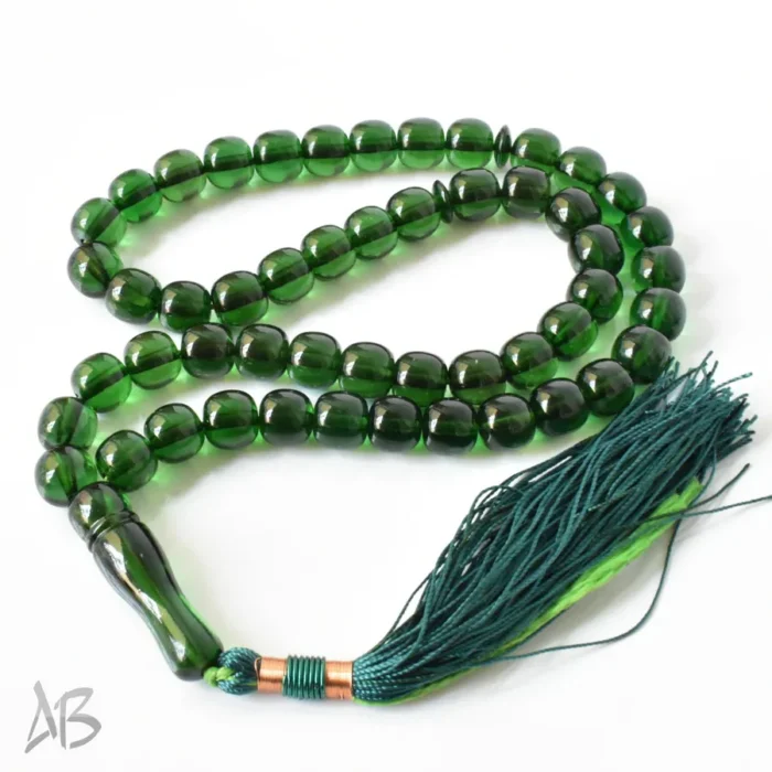 تسبیح سندلوس 51 دانه اصل سبز بودار گرد فندقی شماره 13 کد 1295 آقابزرگ
