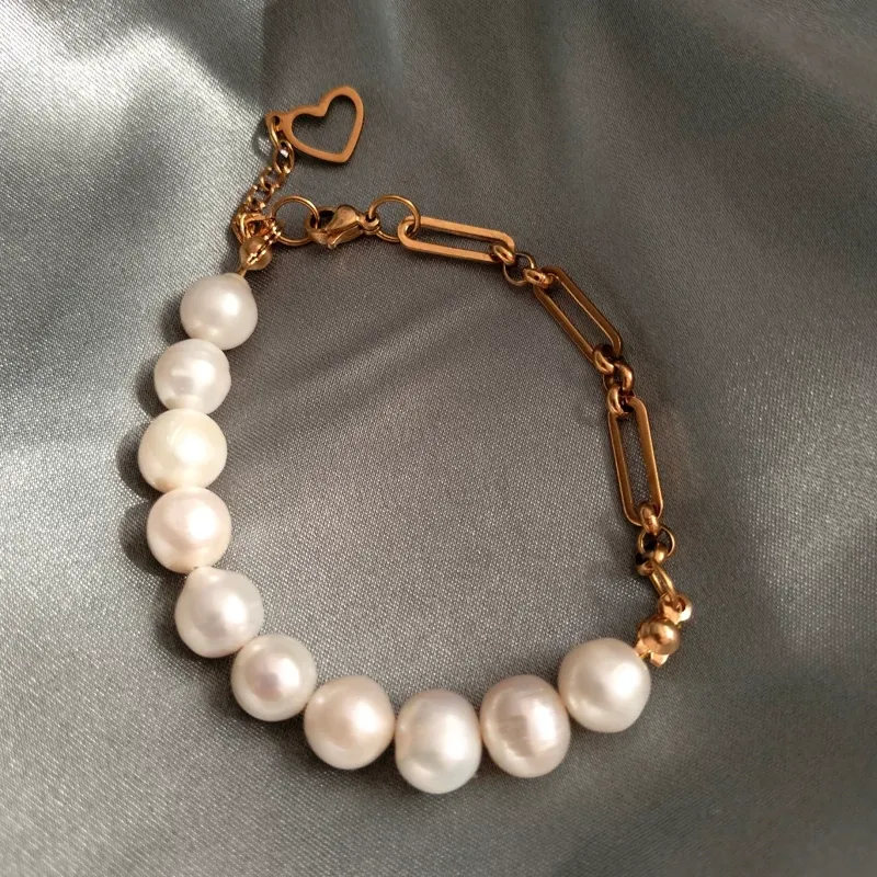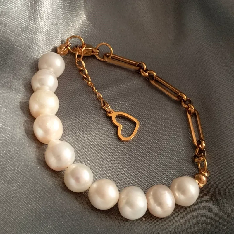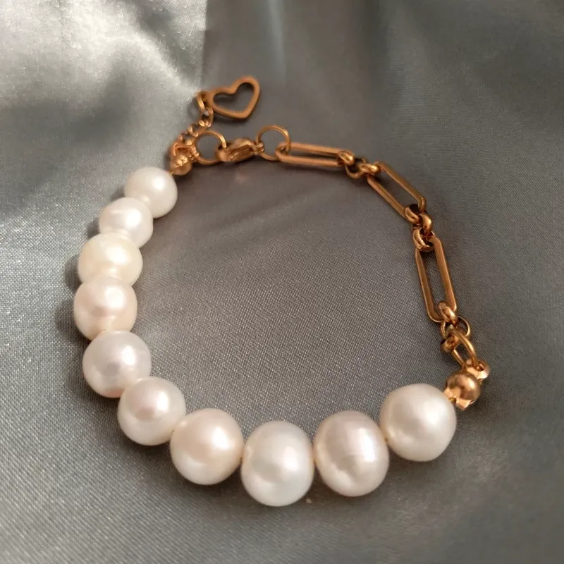 دستبند مروارید پرورشی سایز 8 کاملا گرد درجه یک متریال استیل ضد زنگ mv5