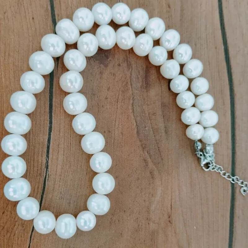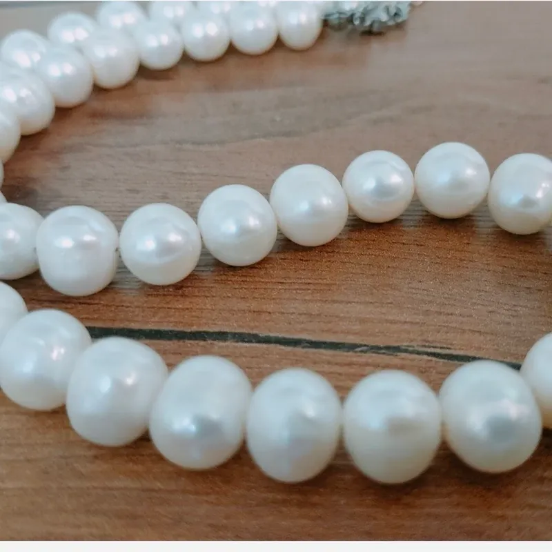 گردنبند مروارید پرورشی اصل منظم 8 تا 10 میل درشت قفل استیل رنگ ثابت کد mv11