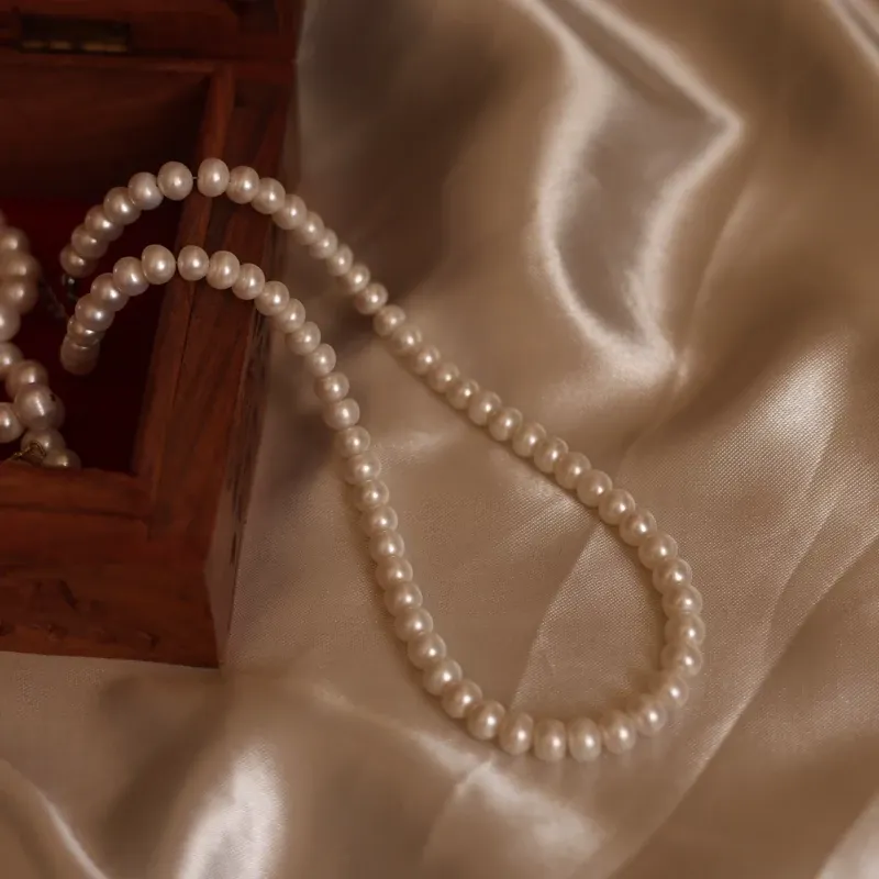 - مرواریدها حساس به اسید، عطر، حتی گرمای زیاد هستند؛ پس توصیه میشود پس از استفاده با پارچه نرم تمیز شود و در جعبه جدا نگهداری شود